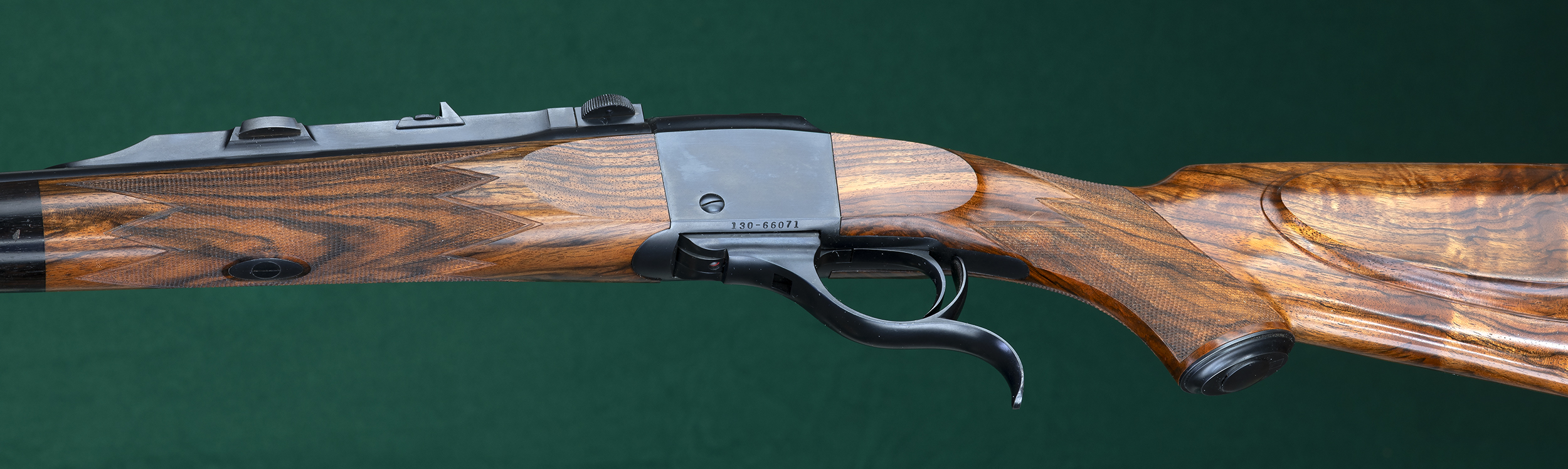 | | stocks with ebony forend tip, classic point pattern checkering with mullered |