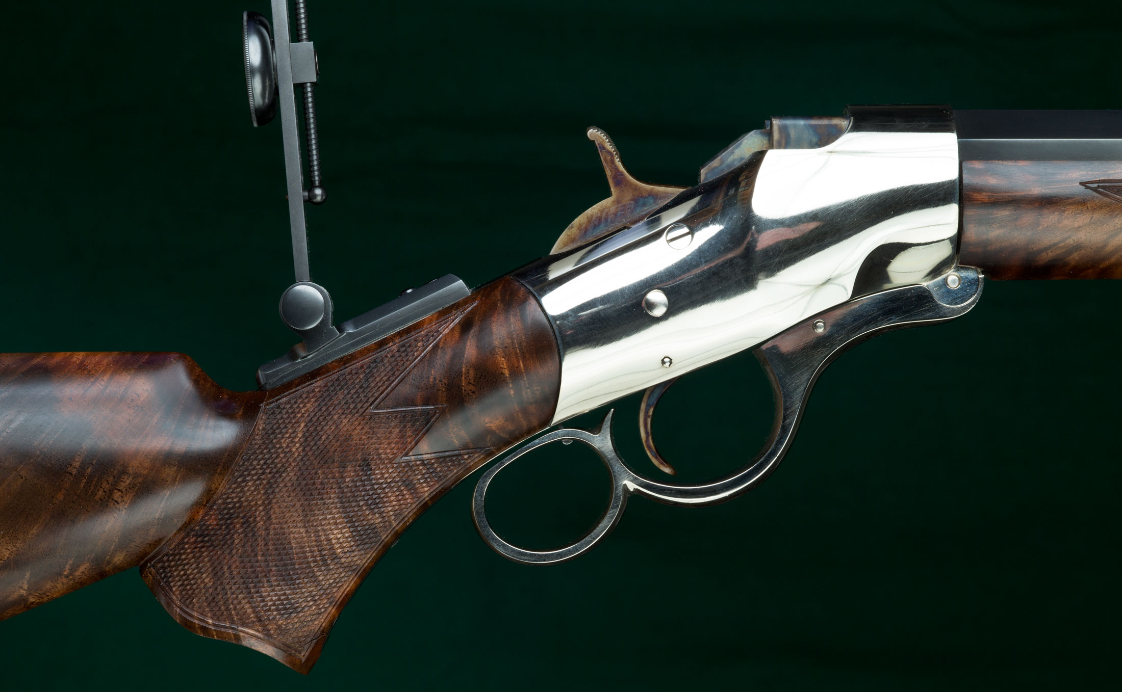 | buttplate. Nickel plated Wesson single-shot action built by Steve Earle with |