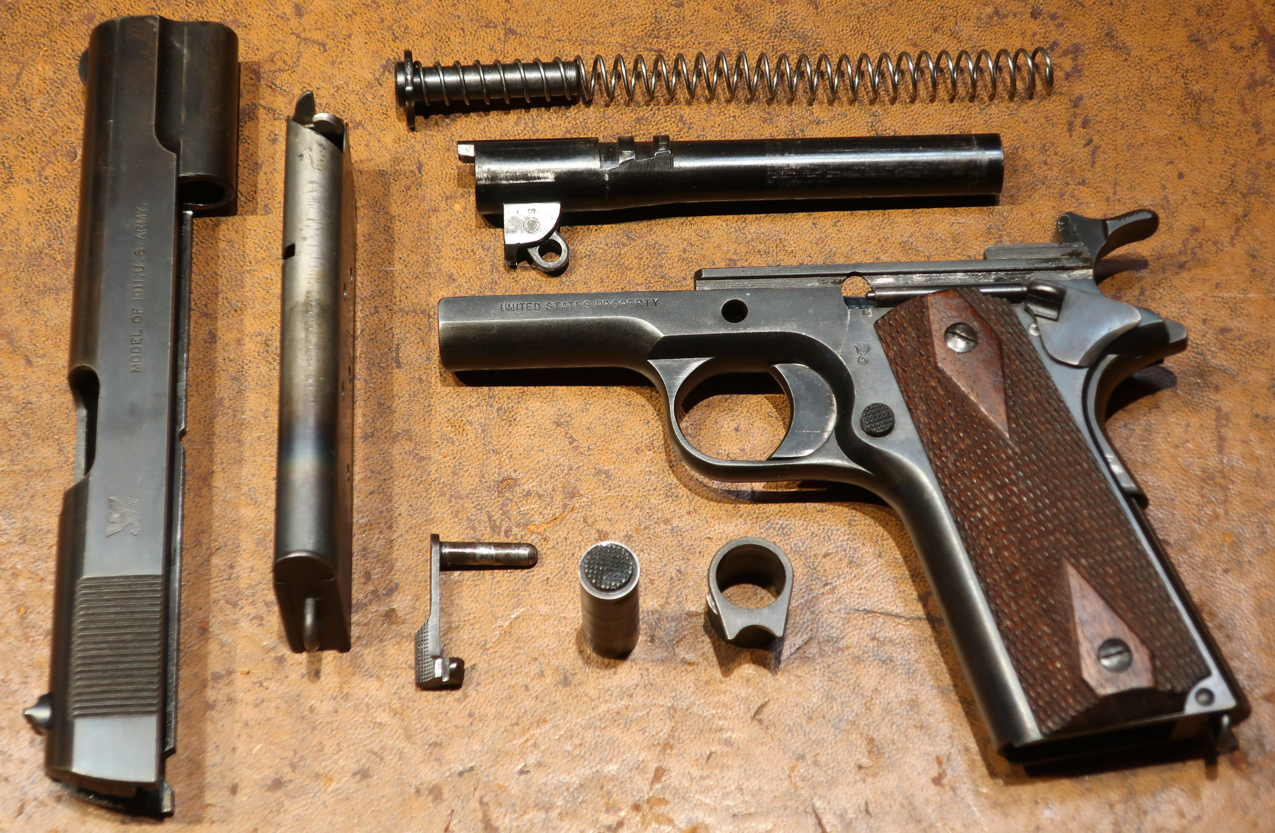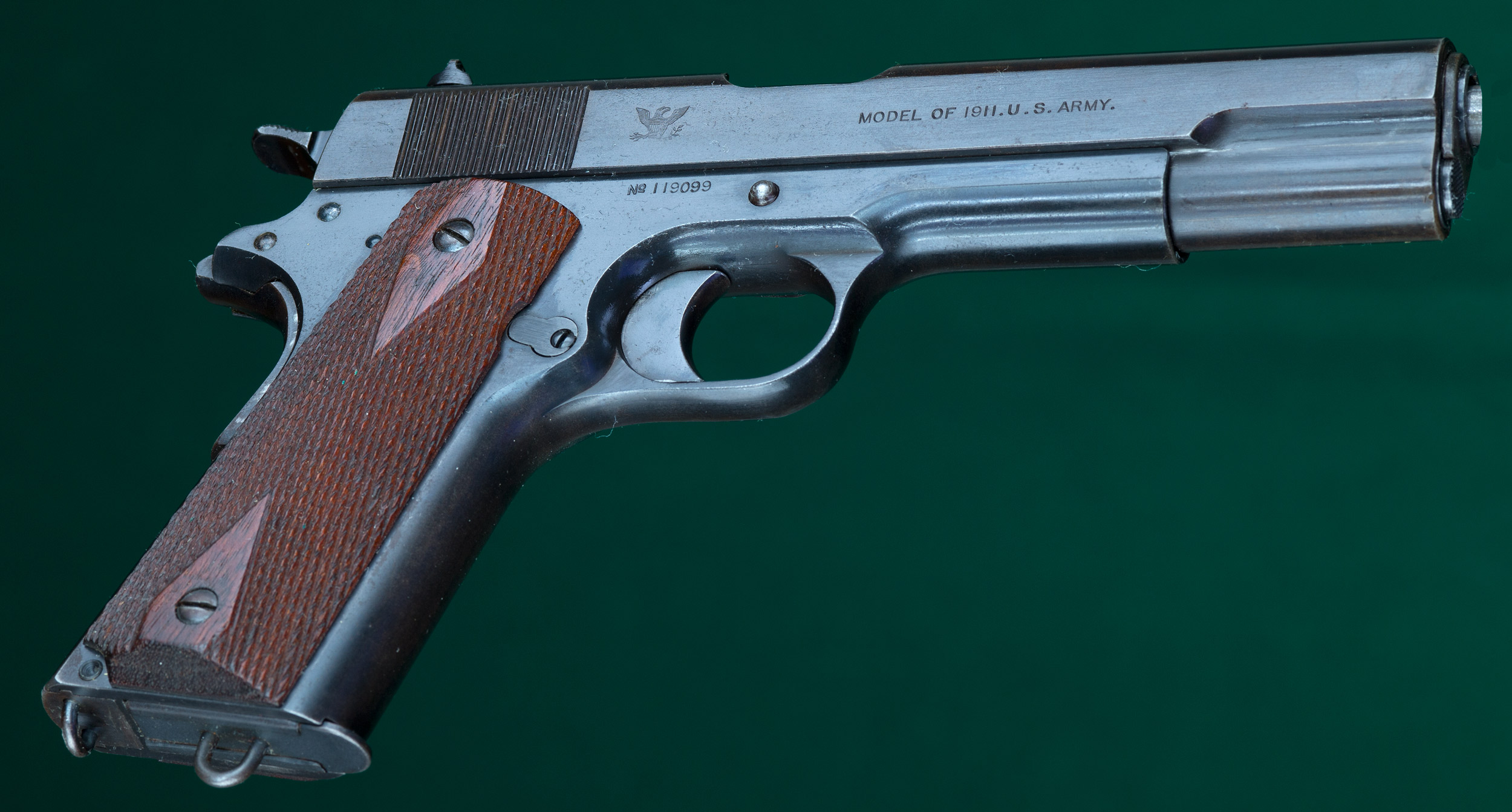 | | United States Property marked. Checkered diamond walnut grips. Lanyard |