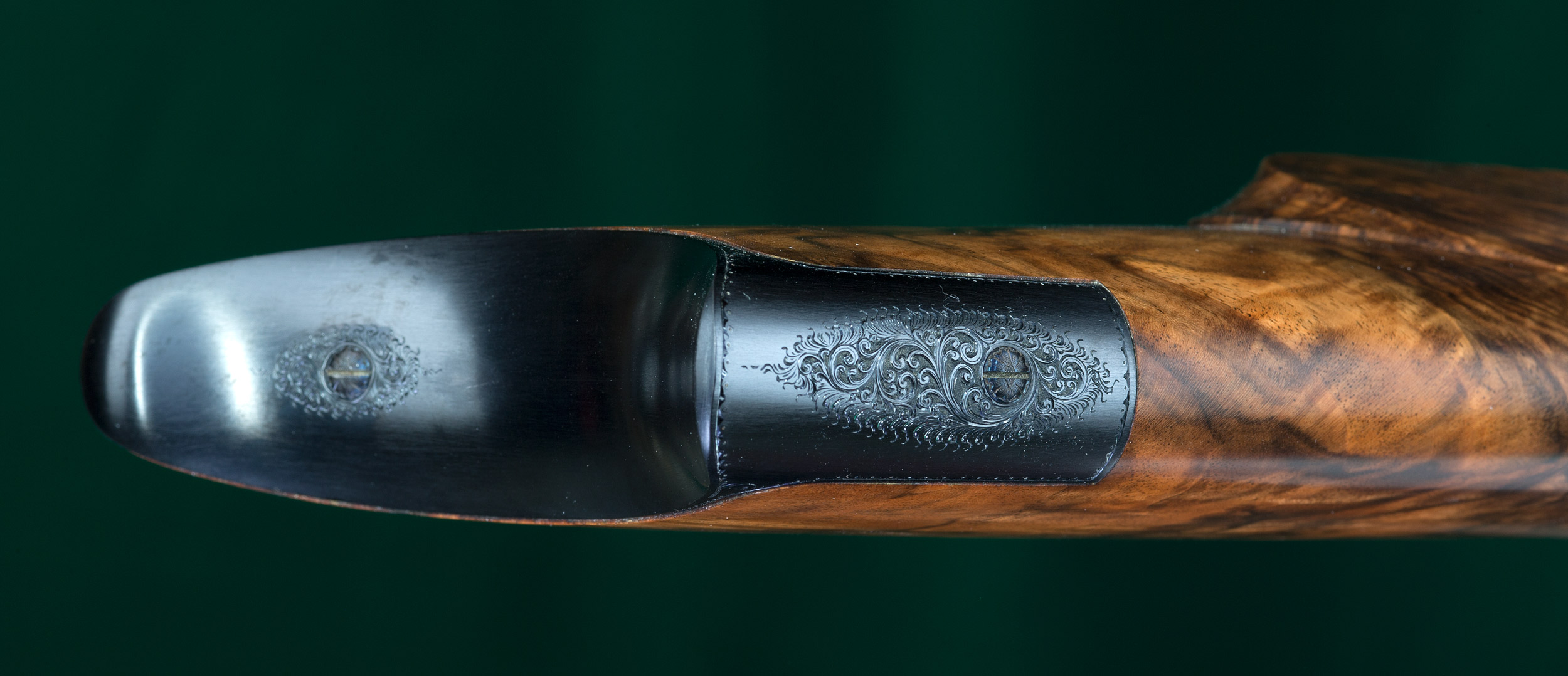 | | ebony-inlaid schnabel forend, ebony-inlaid S-curve pistol grip, beaded |