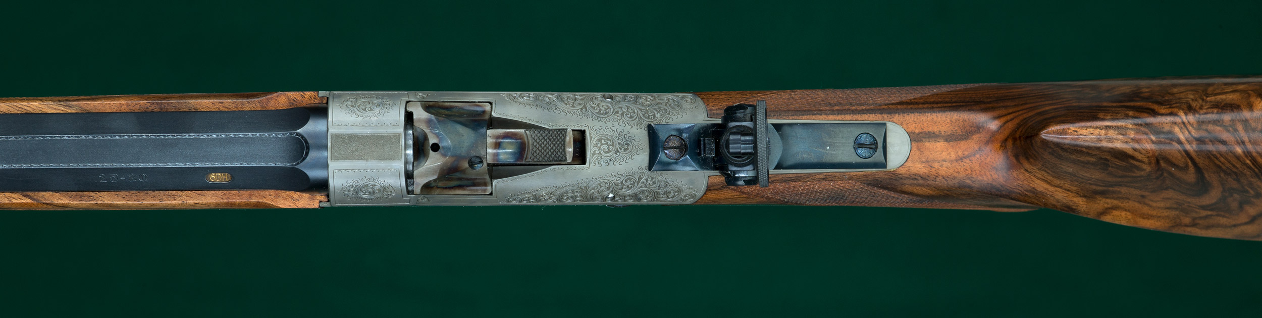 | | sight and gold-inlaid SDH cartouche. Highly figured walnut stocks with |
