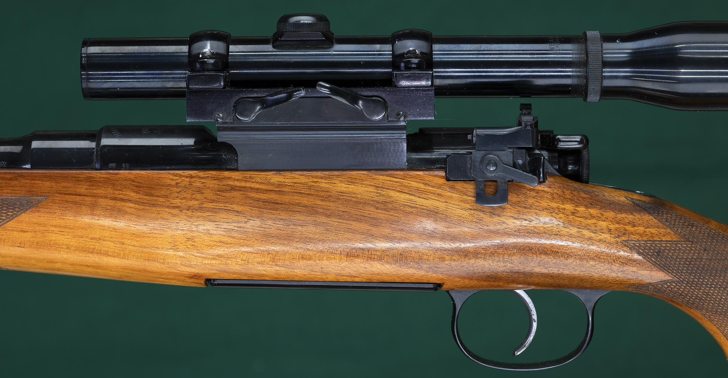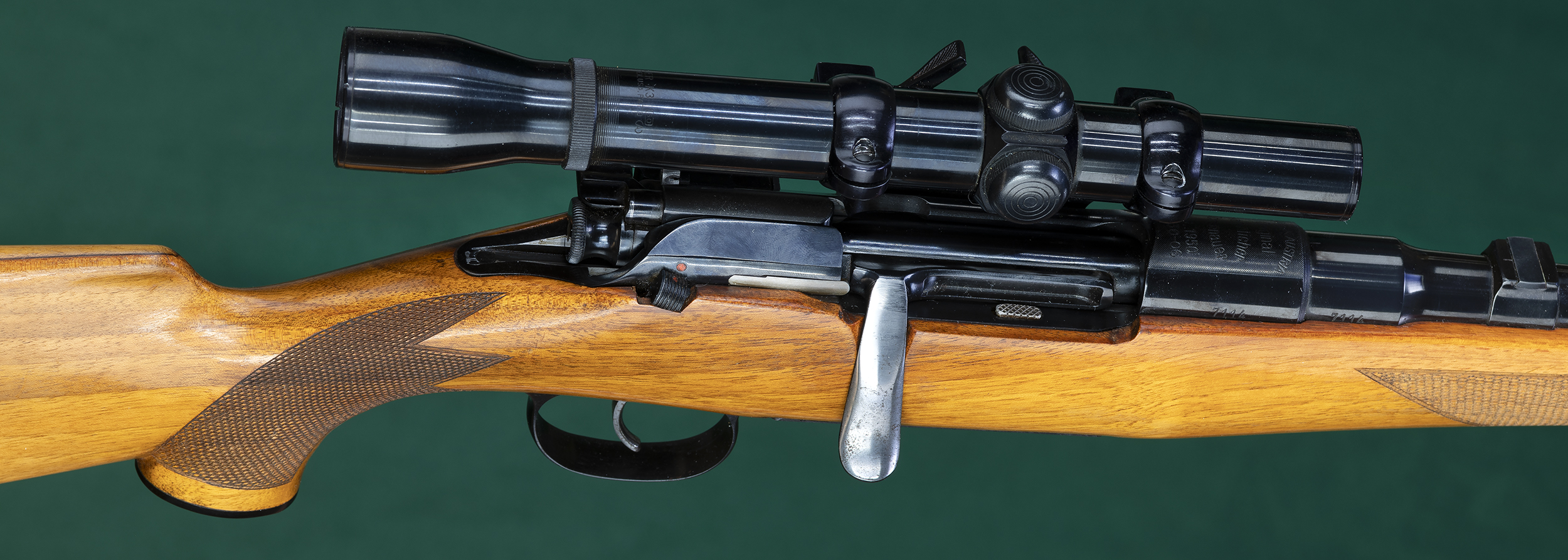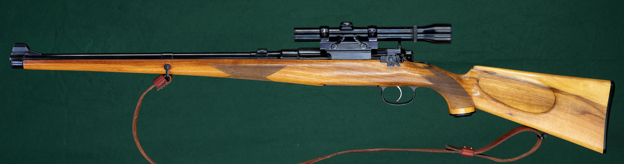 | | Mannlicher action dated 1952 with steel rotary magazine, single trigger, |