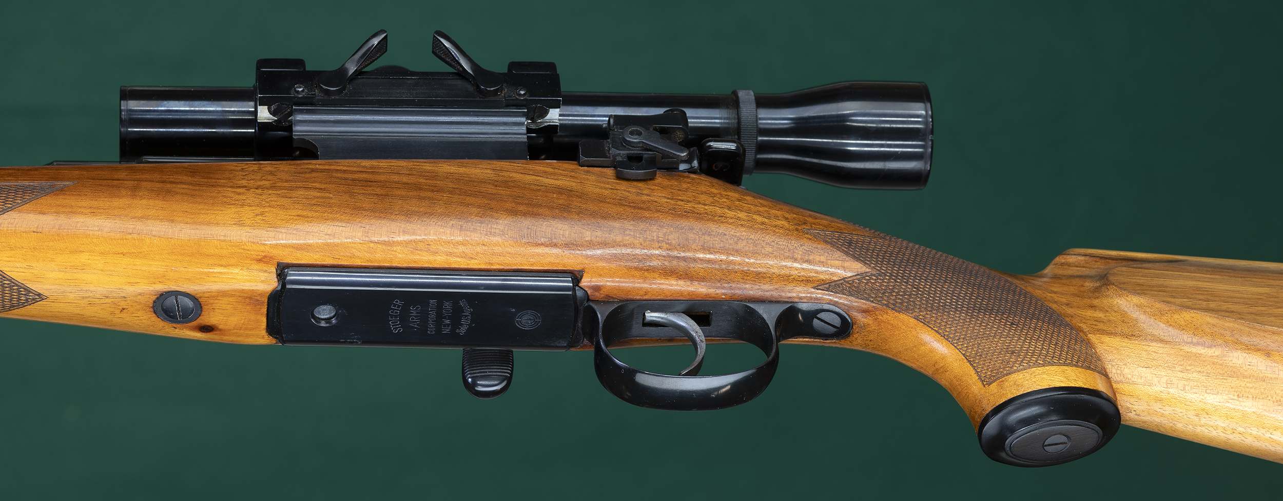 | | bale, bakelite pistol grip cap, classic point-pattern checkering, classic comb, |