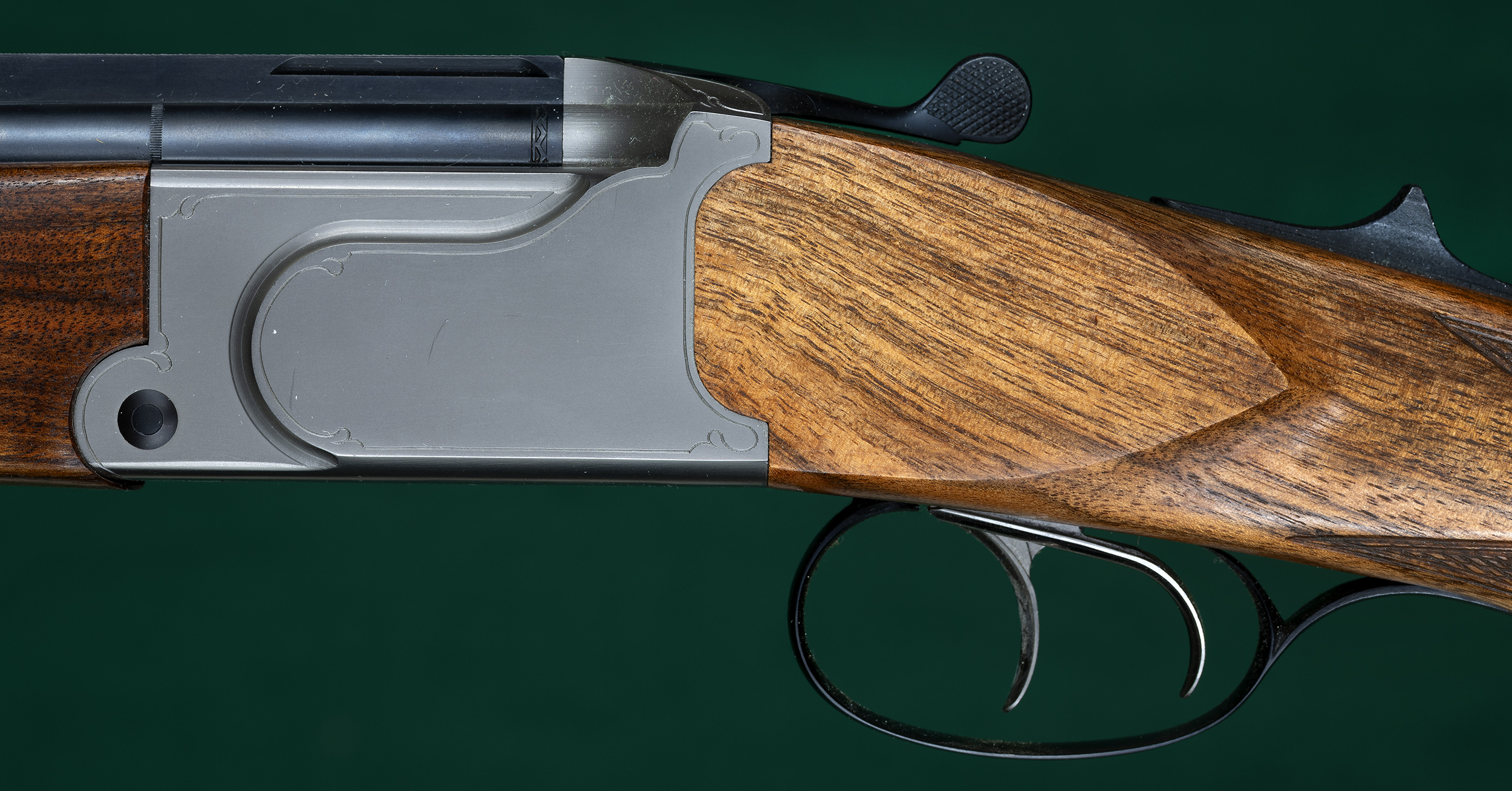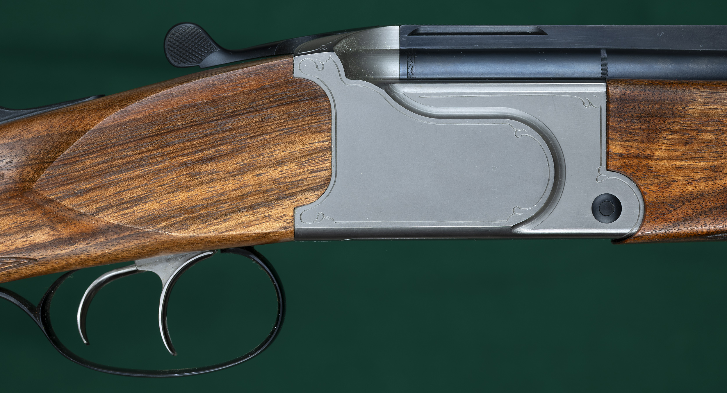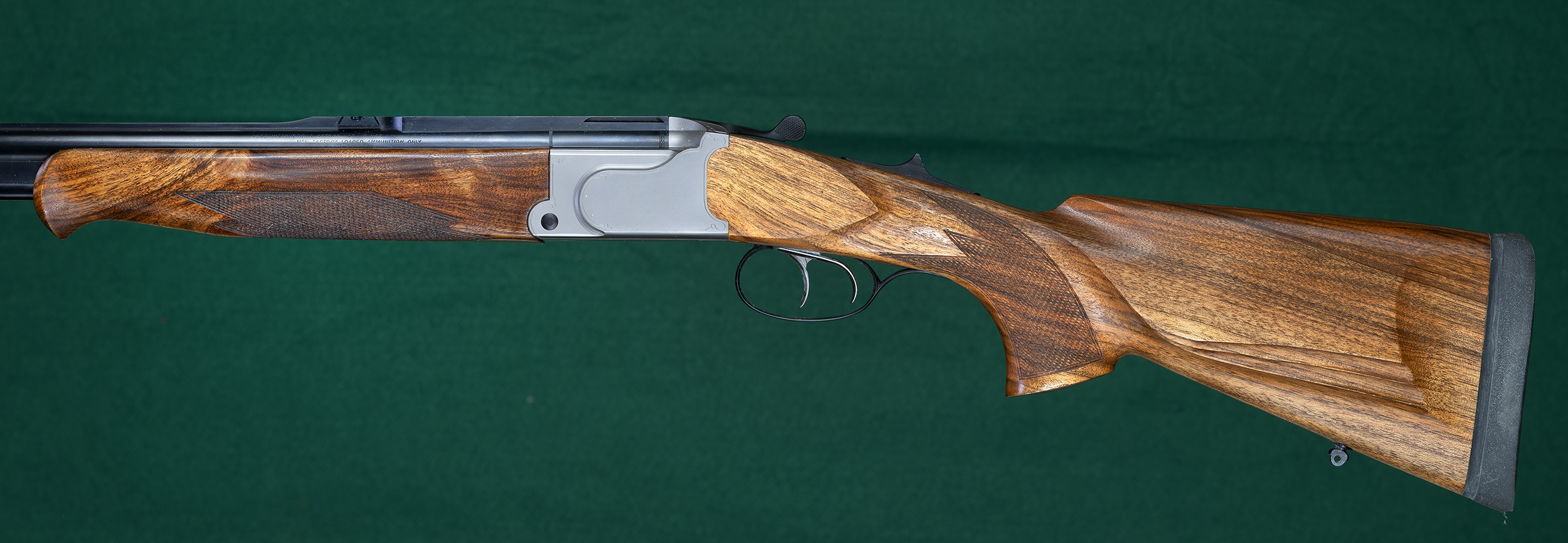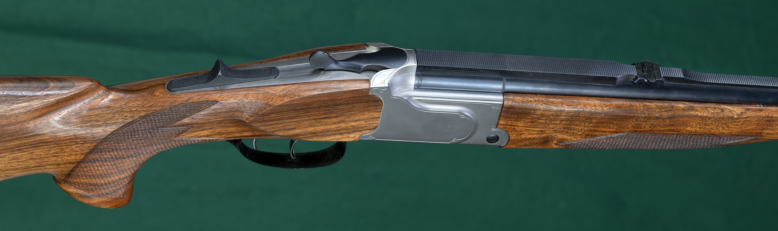 | 23 1/2" O/U barrels with full-length matted solid rib raised at muzzle for blade |
