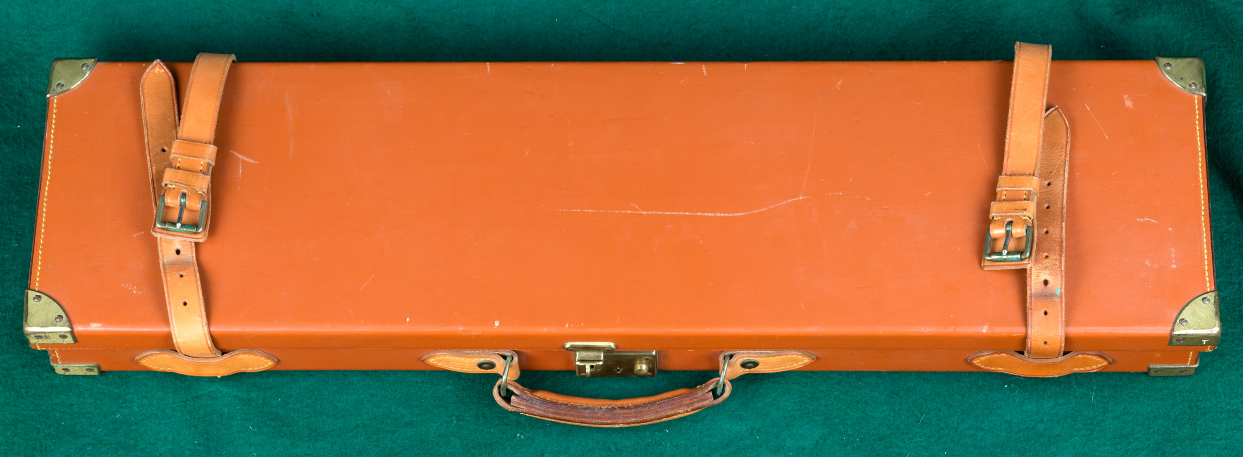 | with maker's name inlaid in gold. Weight: 7lbs, 13oz. In modern leather trunk |