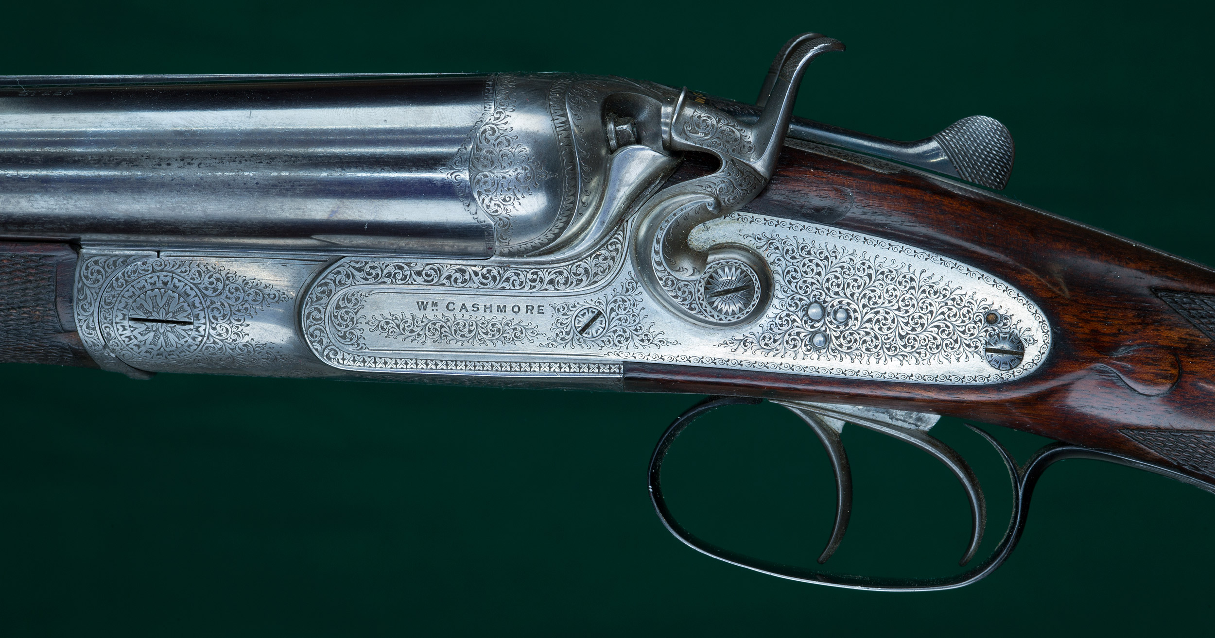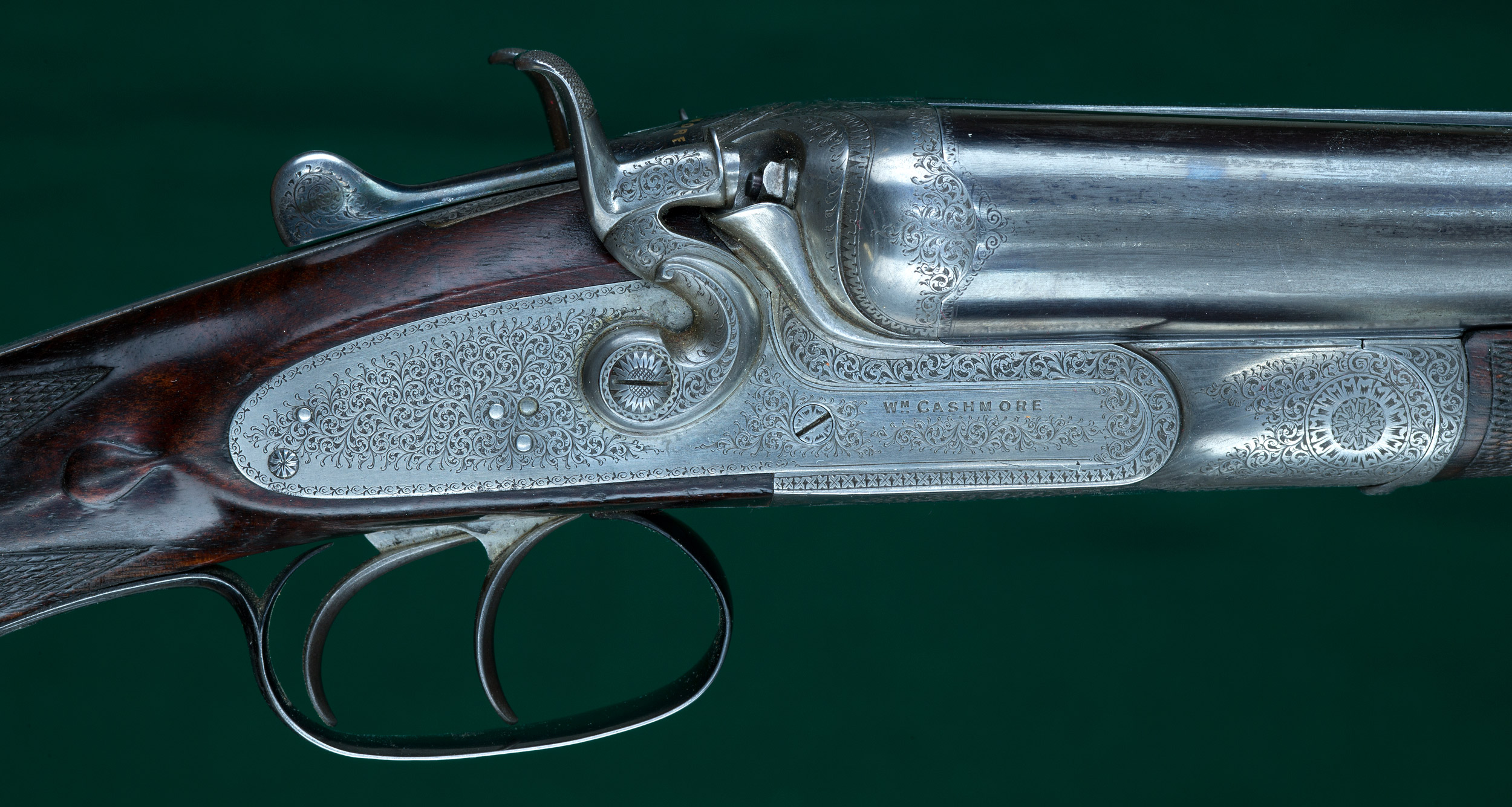 | Fine scroll engraved receiver with rebounding hammers, percussion fences, |