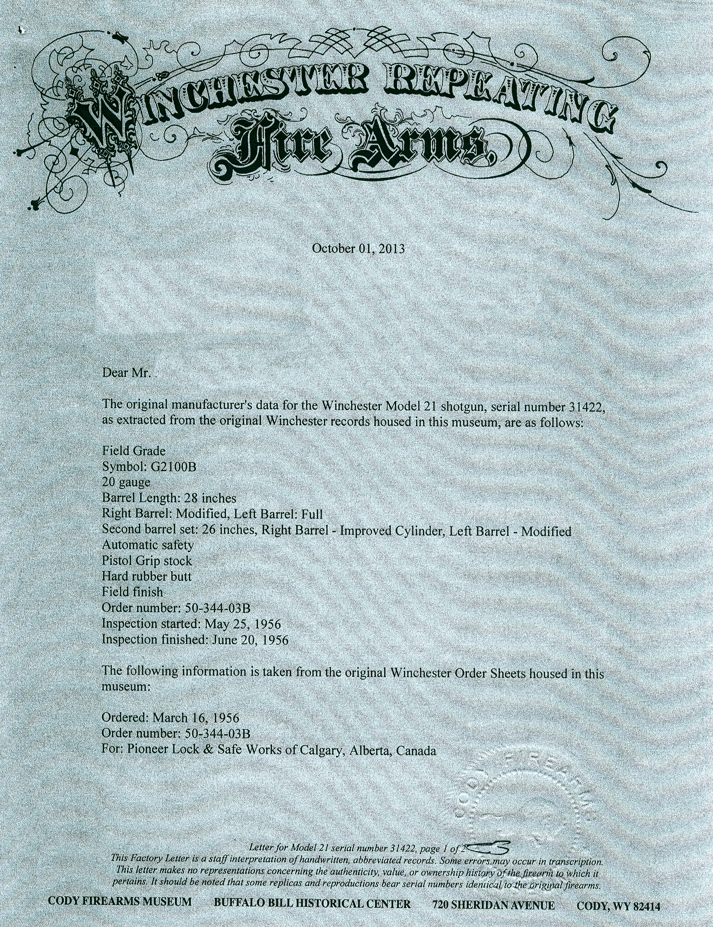 | | automatic top tang safety. Weight: 6lbs, 10 1/2oz. All components numbered |