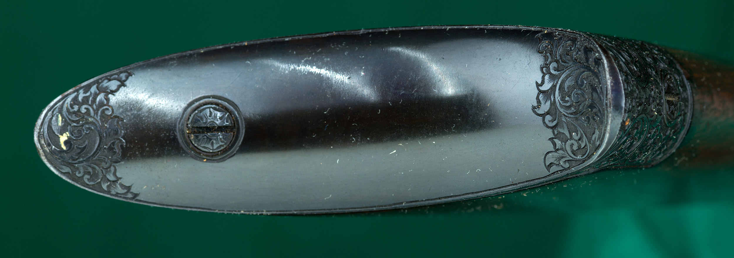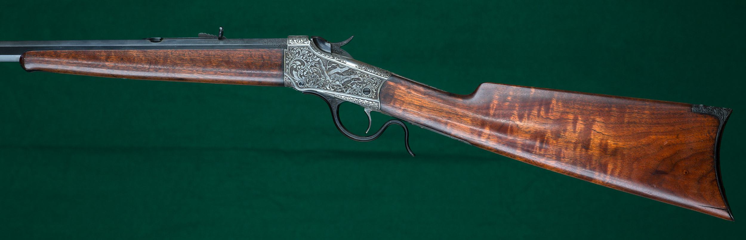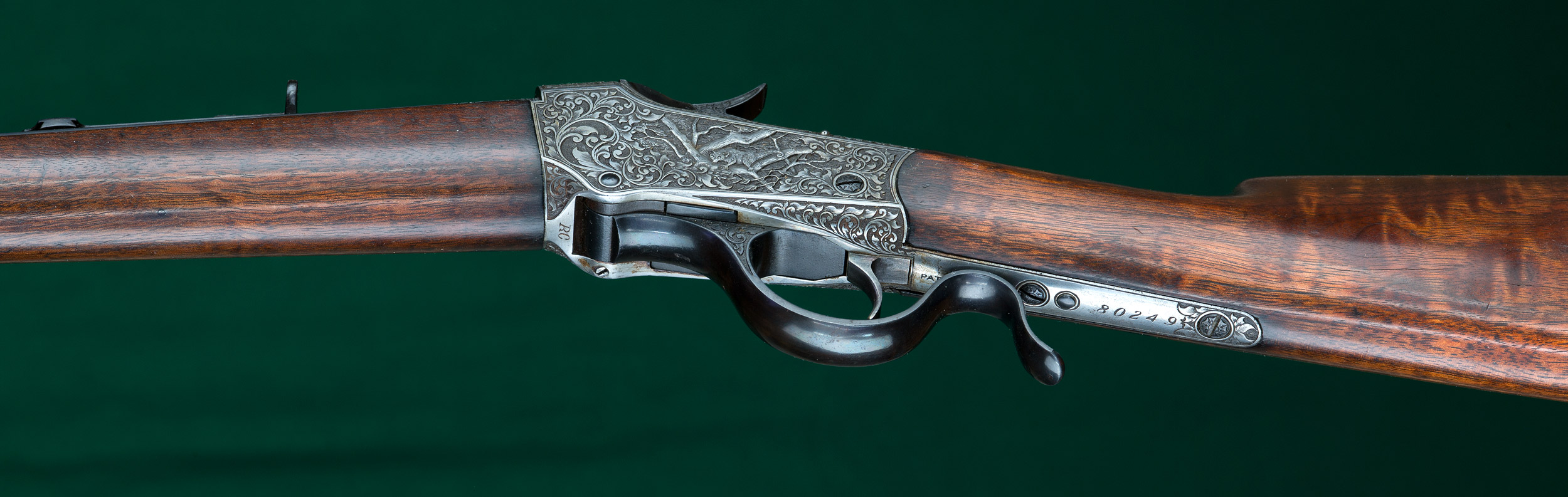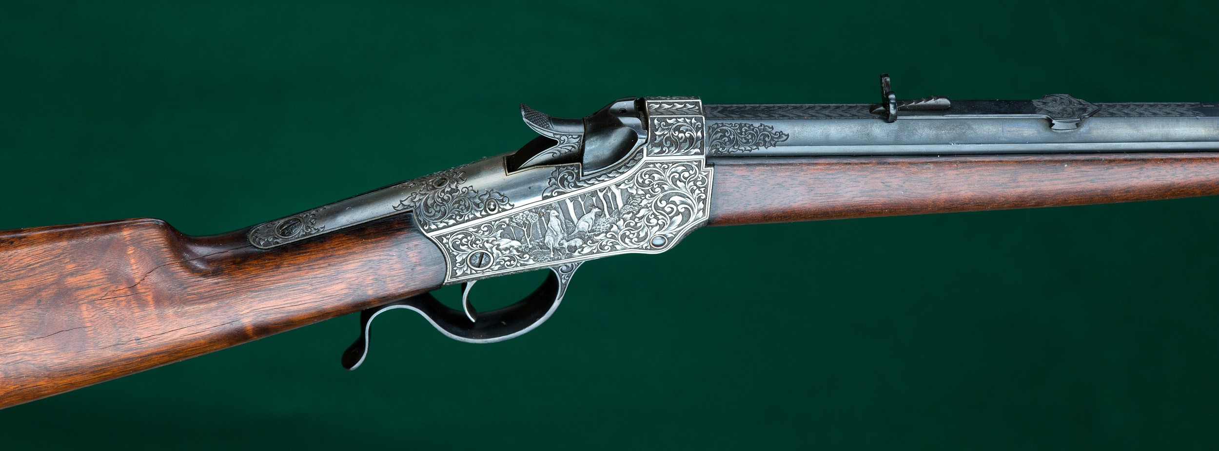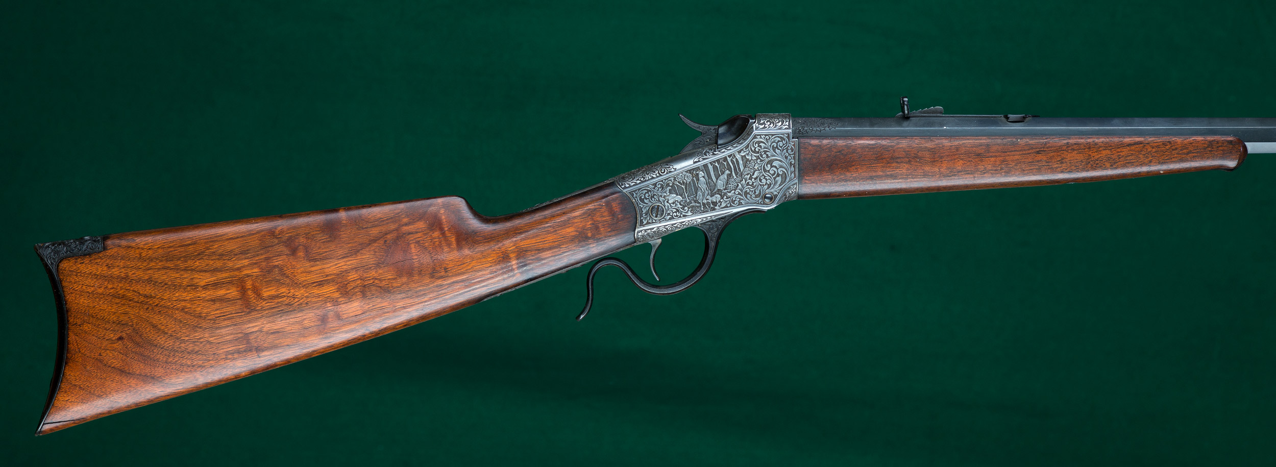 | | grip, and steel crescent buttplate. Extensively engraved French gray receiver |