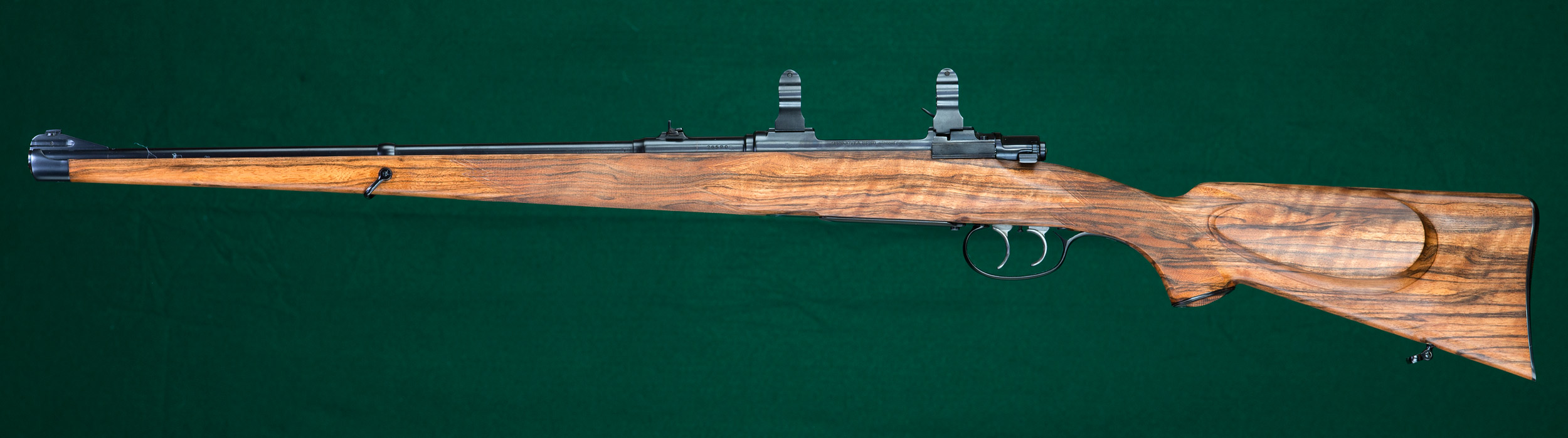 | bale, collar-mounted standing and folding leaf sights. Crisply-grained |