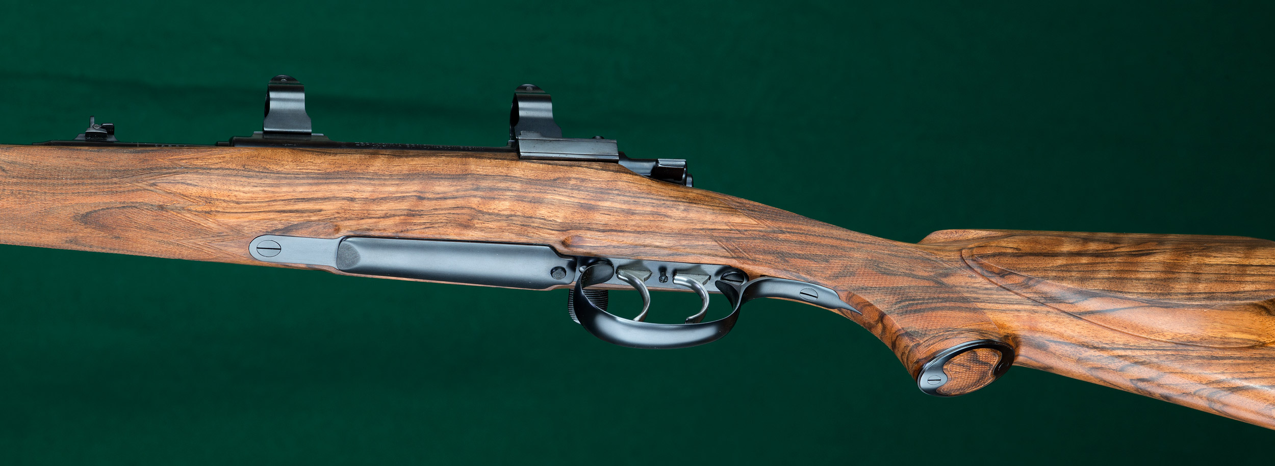 | cheekpiece, rear swivel, and steel skeleton buttplate (also checkered within). |